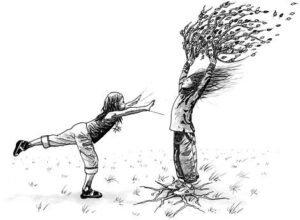 Partnerübung zur Körperhaltung „Baum und Wind“.