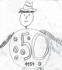 „Tolle Idee!“, begeisterte sich Herr Goldmund und fuchtelte wild mit den Armen in der Luft herum: „Er hat einen Kreisel für Kinder erfunden, der sich mitten beim Drehen in die Luft erhebt und bis zur Zimmerdecke schwebt, wobei er lustige Glitzersterne aufblitzen lässt. Jetzt überlegt mal: Der Mann braucht für seine Familie Schuhe, einen Schulranzen, Bücher, Gemüse, einen Kühlschrank und Marmelade. Nun müsste er immer einen seiner Kreisel im Tausch gegen all diese Dinge anbieten. Irgendwann hat jeder in der Stadt solch einen Kreisel. Den Leuten würde dieser Kreisel nur noch auf die Nerven gehen. Der Erfinder möchte aber inzwischen auch ein Kaninchen, eine CD und Schoko-Eis für seine Kinder haben. Wie soll er das bekommen? Tja, mit Geld ist das alles viel einfacher. Eine Firma verkauft die Kreisel und alles, was dem Erfinder sonst noch einfällt, im ganzen Land oder sogar auf der ganzen Welt. Der Erfinder kauft sich hier mit seinem Geld, was er braucht.“