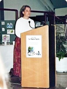 Ausgangspunkt des Vortrages war die Frage, wie die Natürliche Wirtschaftsordnung so präsentiert werden kann, dass eine größere Resonanz in der Bevölkerung zu erreichen ist. Anknüpfend an die psychologischen Weichenstellungen in Richtung gesunde Geldordnung, zeigte die Referentin auf, wie Kinder und Erwachsene sich gegenseitig zu den nötigen Bewusstseinsschritten inspirieren können. In Wort und Bild präsentierte sie eine Fülle von Wegen, die aus ihrer Praxis mit Kindern resultieren. Auch unterschiedliche Kinderliteratur zum Thema kam zur Sprache.
