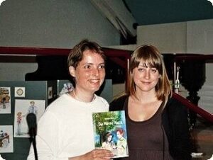 Am Schluss der Veranstaltung hatten die Zuhörer die Möglichkeit, persönliche Widmungen und Handsignierungen zu erhalten, bei denen auch die Illustratorin Fabienne Rieger, deren Originale zu besichtigen waren, und die Layouterin Ana Castro ihre Feder schwangen.