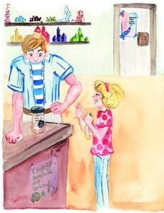 „Ich kann mir vorstellen …“, rief Rosso, der griechische 10-Cent-Münzen-Junge aufgeregt, „ich glaube, wenn die Menschen ihre Sachen einfach nur gegeneinander eintauschen würden, täten sie ständig miteinander streiten!“